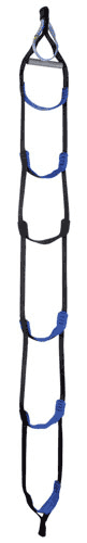 Tweeked and tuned to perfection this generation of WALL LADDERS have made it up some of the hardest aid routes in the world. Plastic PVC pipe spreader holds steps open nice and wide for approach shoes, wall boots and comfortable stances. WALL LADDERS have 1" flat web body with 2" wide step reinforcements - comfortable enough for approach or rock shoes. Lower clip in loop links ladders together for lengthy cheater stick moves.